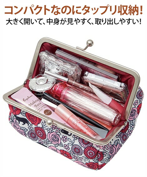カードケース たっぷり入るがま口化粧 ポーチ 黒ネコ 収納 便利 ニッセン