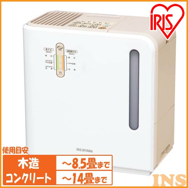 ■商品サイズ(約):幅37.4×奥行20.8×高さ37.6cm■商品重量:約5.4kg■仕様 加湿方式:気化ハイブリッド 定格電源:AC100V 定格周波数/消費電力:50Hz/217W、60Hz/220W 適応床面積(目安):木造和室8.5畳/プレハブ洋室14畳 加湿量(ml/h) おまかせ・うるおい・強:500 静音・弱:290 運転音50/60Hz(約dB以下) おまかせ・うるおい:28〜34 静音:28〜29 強:34 弱:29 連続使用(約時間) おまかせ・うるおい・強:10 静音・弱:17.2タンク容量:約5L 動作温度:5〜35度 切タイマー:2・4時間 コード長さ:1.5m■材質:ABS樹脂★
