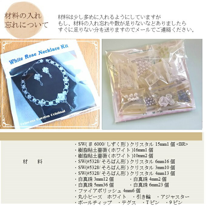 白い丸小ビーズを編んだロマンティックなデザインの手作りキットです。